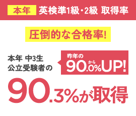 また、駿台・浜学園では英検2級の合格率が約90%と圧倒的な実績を誇っています。